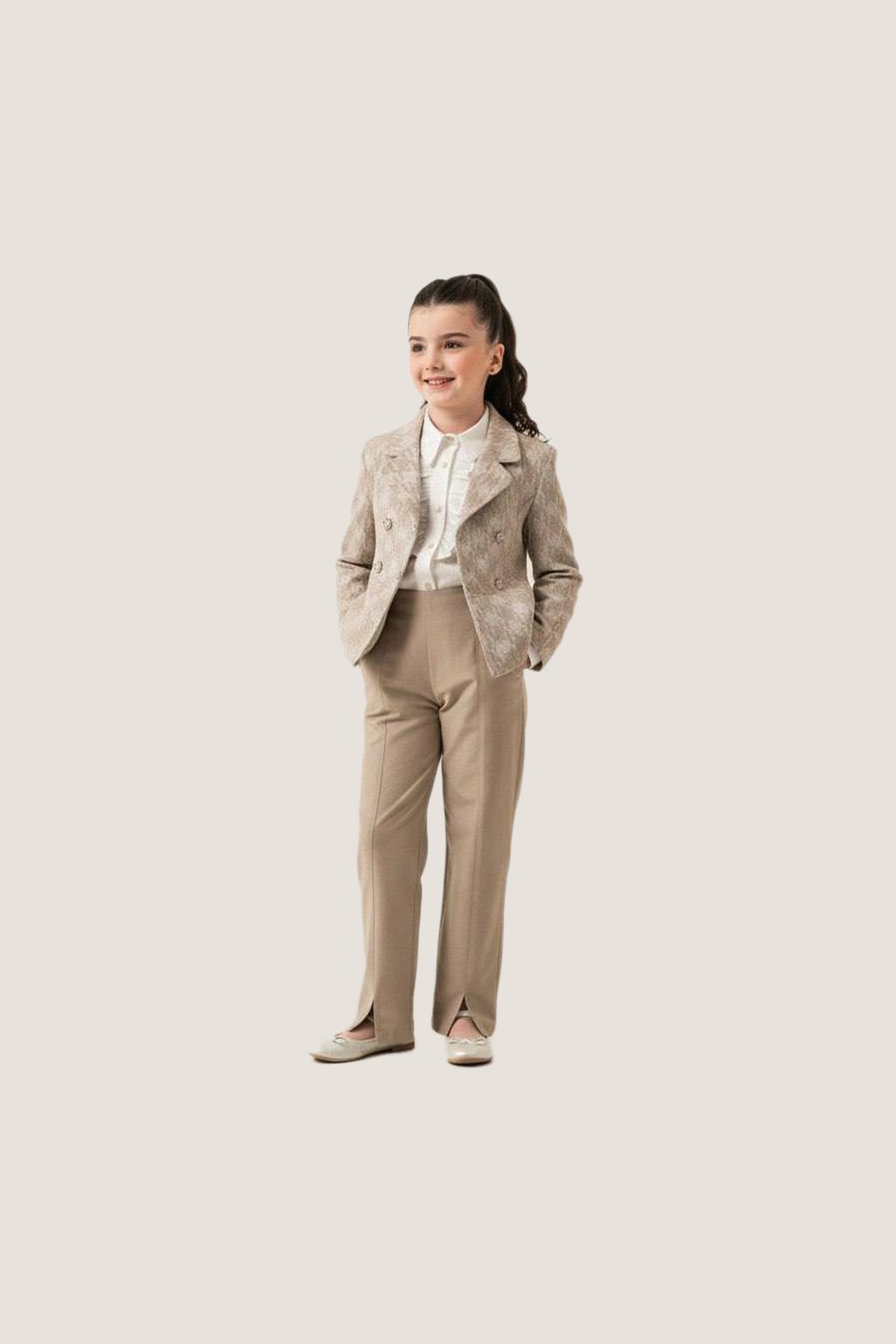 Girls’ Beige Blazer with Tailored Pants Set