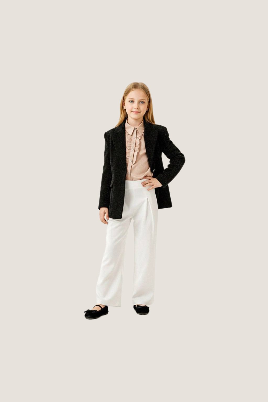 Girls’ Black Blazer with White Wide-Leg Pants Set